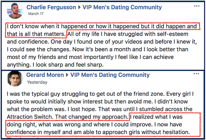 If anyone ever told you that it was "effortless" to turn your dating life around, you were not being told the truth. In fact, learning to flirt with attractive women, learning to always be charming around girls takes effort and time (at least a month). And, since many guys don't have the commitment and consistency to practice throughout that month, we have made it very easy for you by giving you the support as a community of guys who are going through the same process themselves.