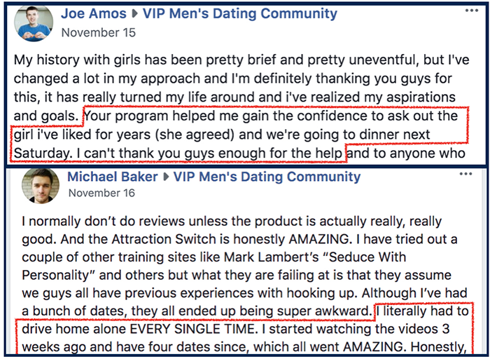 The Attraction Switch™ is the world-famous training that teaches men how to become more confident around women, how to flirt with them and shamelessly make them laugh. This is not a pickup artist course.